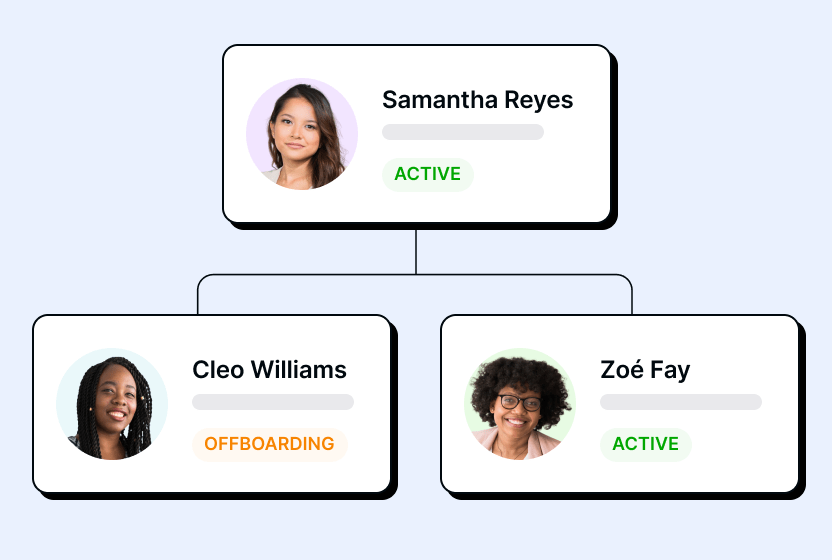 Easily search and filter your workforce by team, status, country, state, title, and more