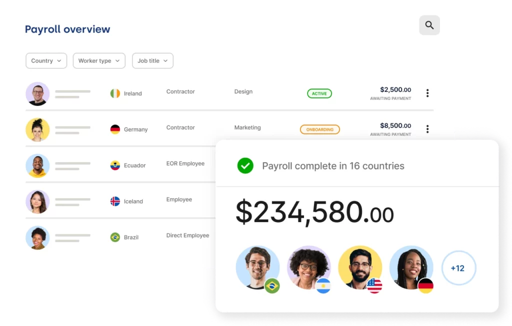 Run payroll in 100+ countries with one platform to streamline international operations and eliminate the ongoing admin of local compliance, taxes, benefits, and more.
